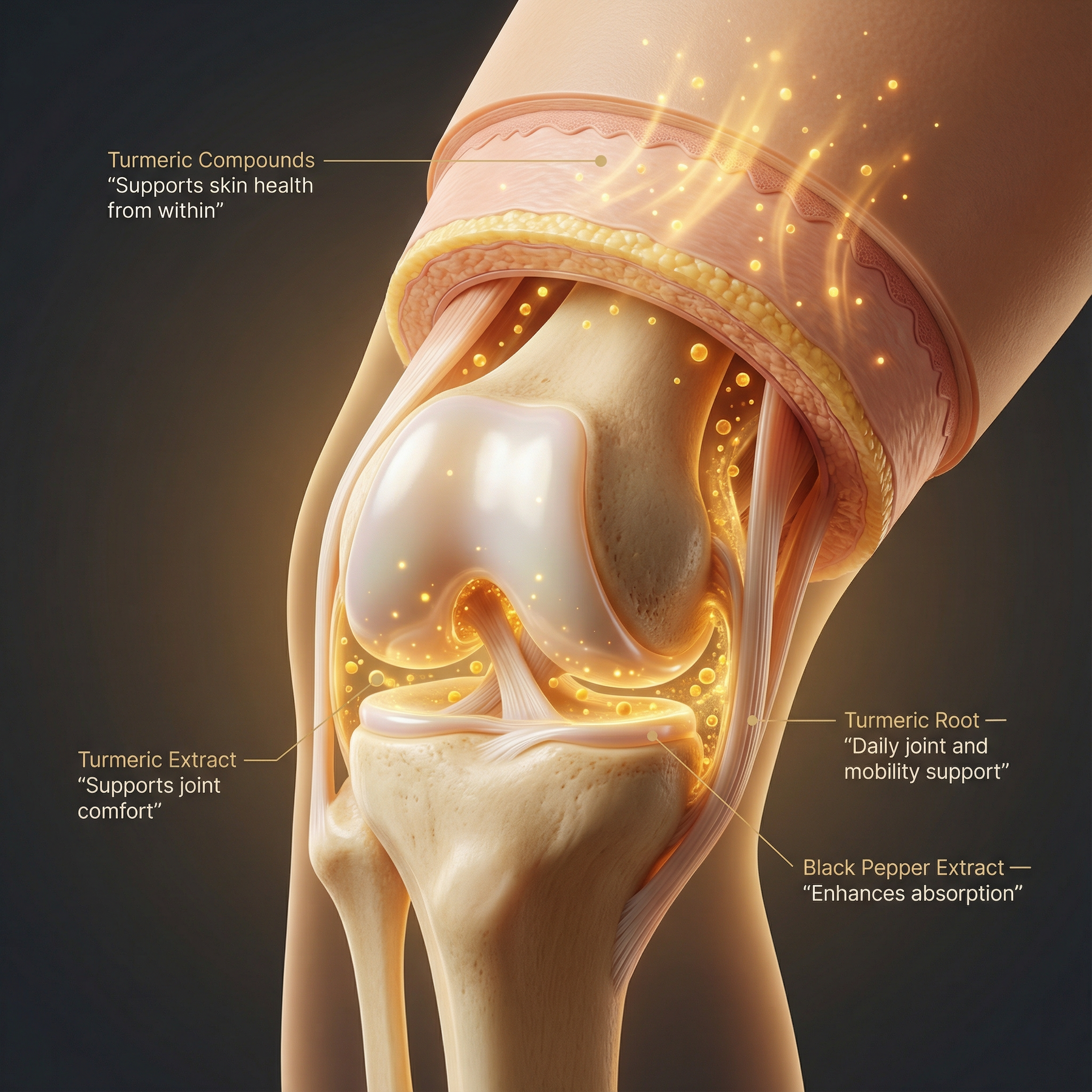 Turmeric has been traditionally used to support joint comfort and overall wellness, while black pepper extract helps enhance absorption so your body can better utilize the ingredients. In addition to joint support, this formula also helps promote healthy-looking skin from within, making it a well-rounded daily supplement for those looking to stay comfortable, active, and supported over time.